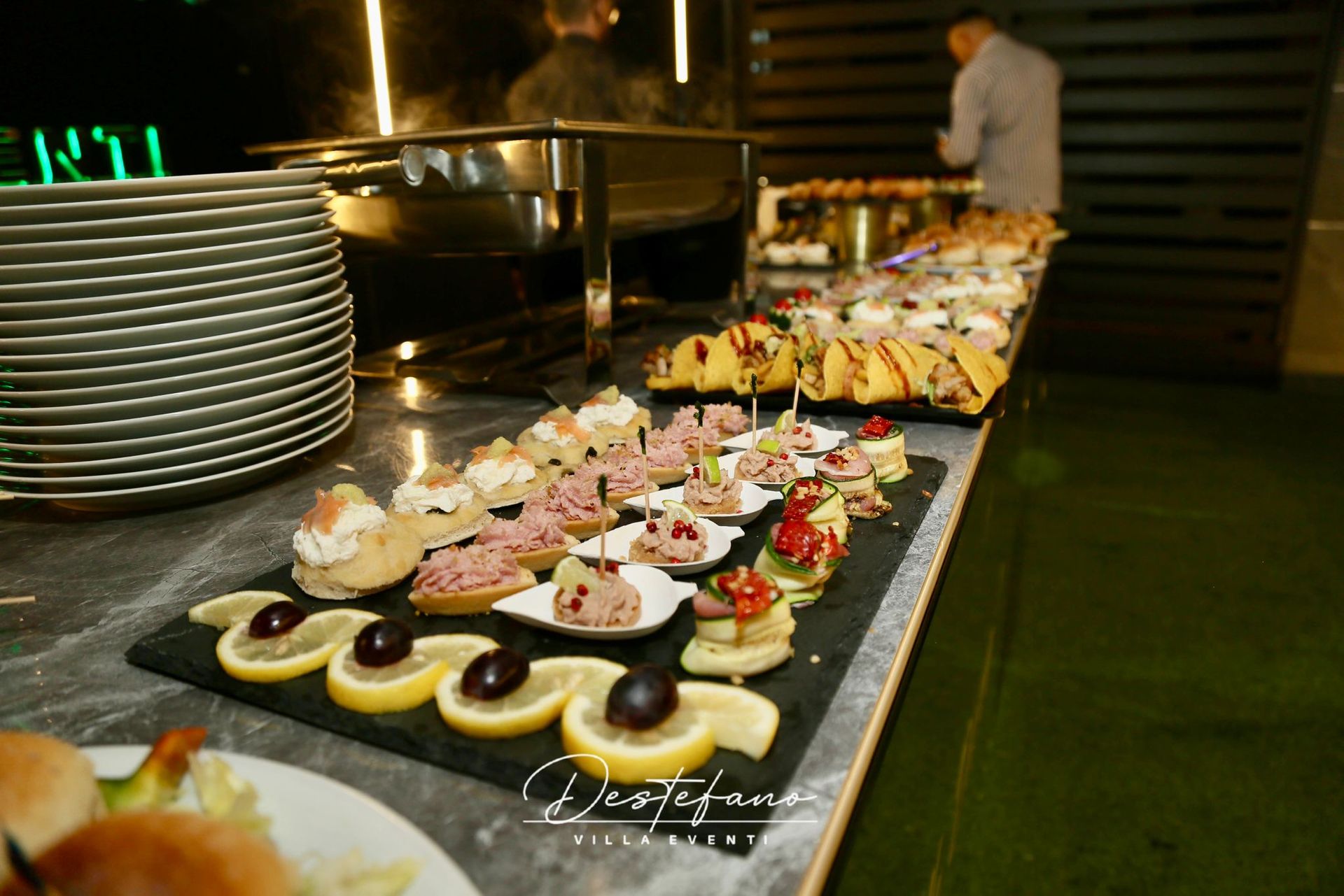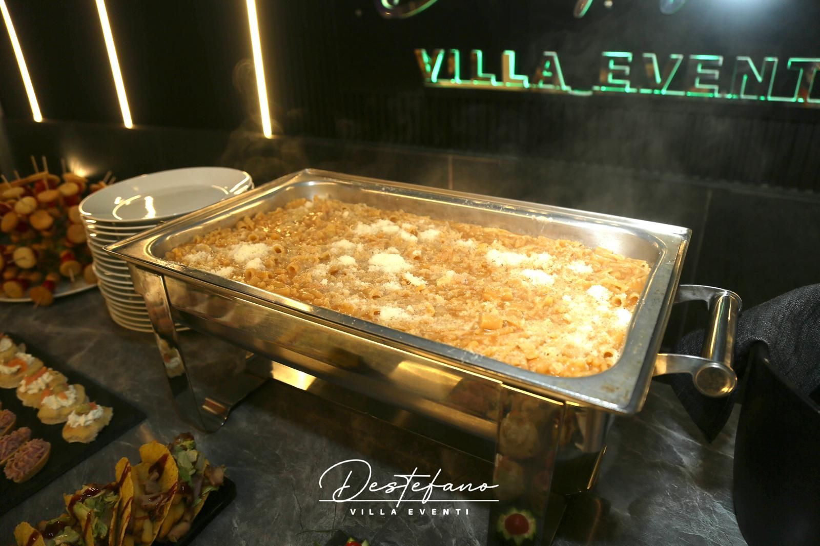 Destefano Villa Eventi offre ai festeggiati e ai loro invitati spazi eleganti e accoglienti, la professionalità del personale di sala e dello staff d’animazione, e una cucina d’eccellenza, per garantire un evento da sogno. Un team di esperti si occuperà di ogni dettaglio, dall’accoglienza alla ristorazione, dall’animazione agli allestimenti.